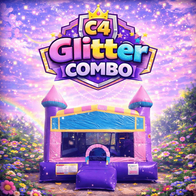 Do The Happy Bounce is delighted to introduce the C4 Glitter Castle Inflatable Bounce House Combo! This exquisitely decorated bounce house features a dazzlingly sparkly castle, slide, basketball hoop, and climbing wall all in one. Kids can have fun clambering up the inflatable wall before sliding into the sparkling-with-joy castle area where they can play with their friends or practice shooting some hoops. With its brilliant colors and glittery decorations, C4 Glitter Castle Inflatable Bounce House Combo adds an extra layer of excitement to any celebration or family gathering. Also available: are interchangeable art panel options designed specifically for your party theme!