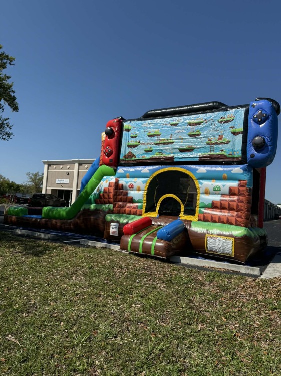 Level up the fun with our Gamer Switch Dual Lane Combo! Designed with bold gaming-inspired graphics, this inflatable features a spacious bounce area, climbing wall, and two side-by-side slides for friendly racing action. Perfect for birthdays, parties, and gaming fans, it delivers nonstop excitement and competition in a safe, durable setup everyone will love!