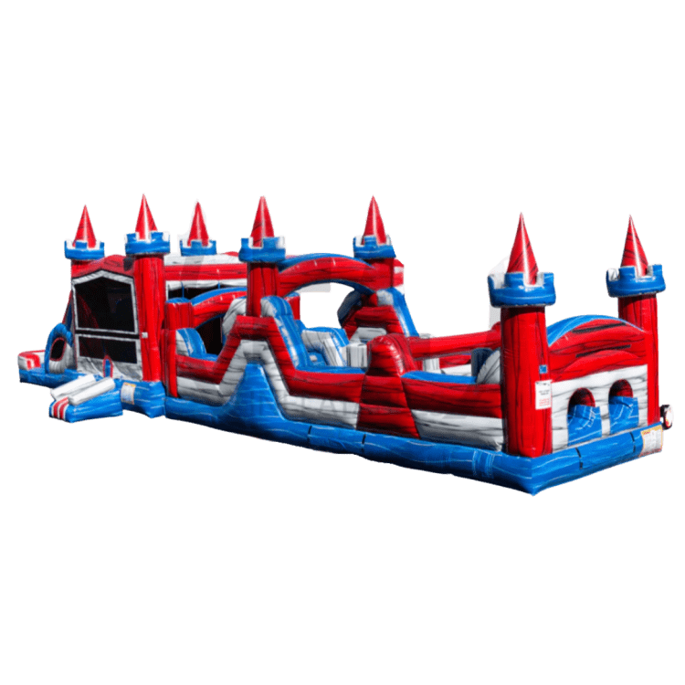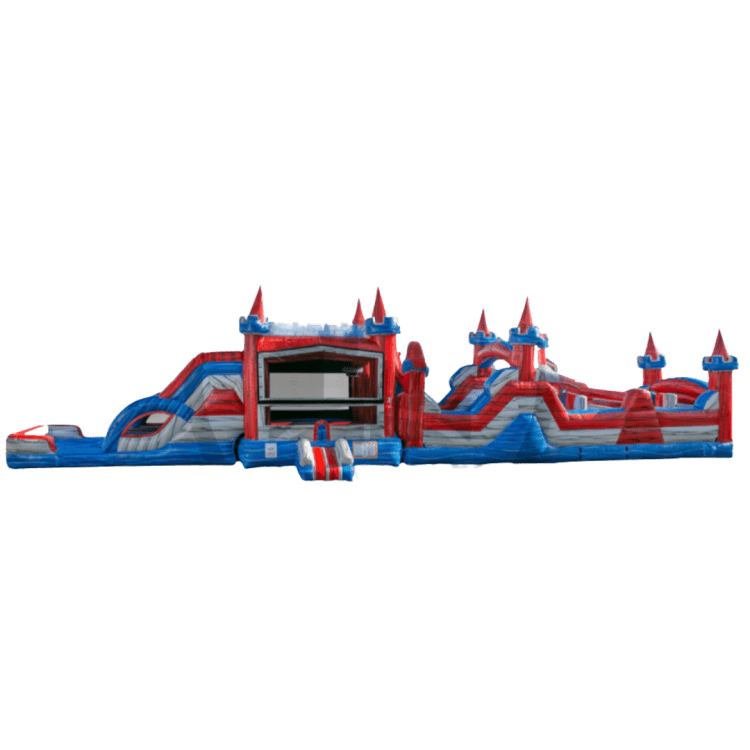 Introducing a stunning addition to any event or party- the Castle Tower Obstacle Course! This inflatable is built of high-quality materials and designed to impress your guests. Featuring a castle-inspired facade, this obstacle course has multiple challenges and obstacles that will test the skills and abilities of your participants. With its towering height, it delivers a heart-pumping experience that's sure to leave your guests wide-eyed and thrilled. Its bright, vivid colors add a touch of magic that draws everyone in, and its impressive size allows for multiple participants, making it the perfect attraction for large events. Whether you're hosting a school carnival, a corporate event, or a backyard party, the Castle Tower Obstacle Course is sure to be a hit!